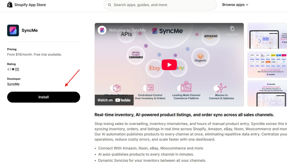 You will be redirected to the Shopify App Store page. Click on Install Shopify App to begin the installation process.