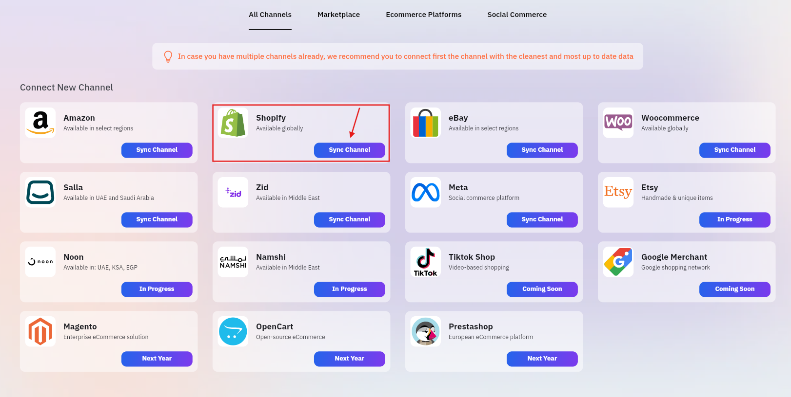 Enable Inventory Sync: Prevent overselling by syncing inventory across channels.