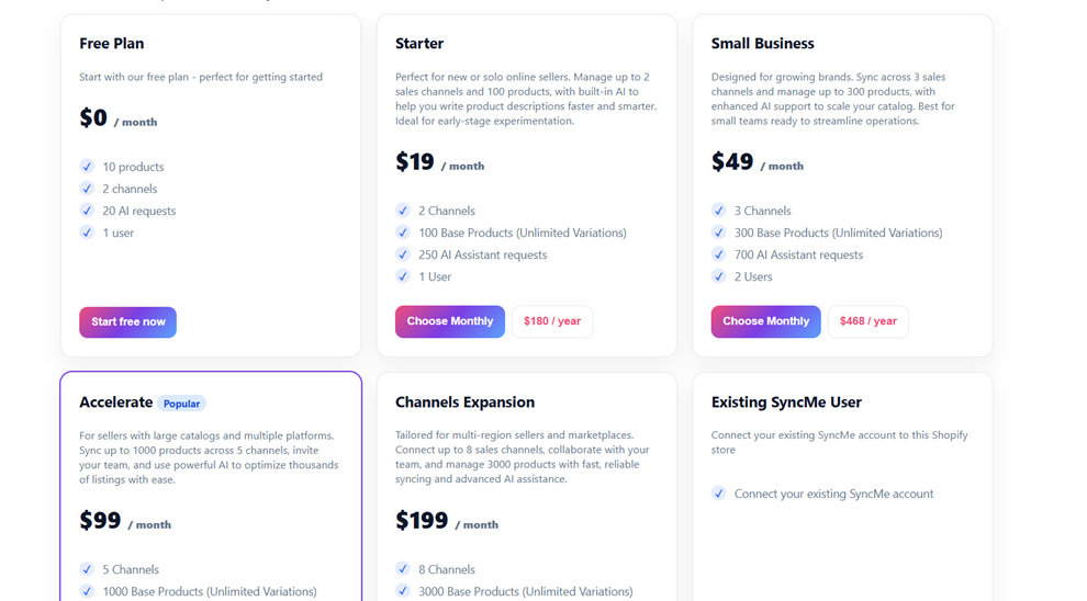 Choose a SyncMe plan or connect your existing SyncMe account if applicable.